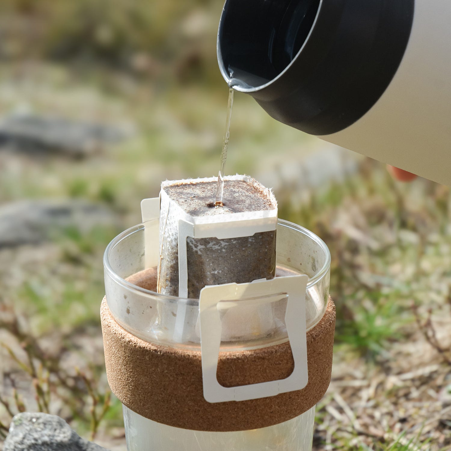 Idealne rozwiązanie dla osób w ciągłym biegu. Wystarczy mieć ze sobą gorącą wodę, kawa jest jest na wyciągnięcie ręki, lub w tym przypadku torebki z opakowania.