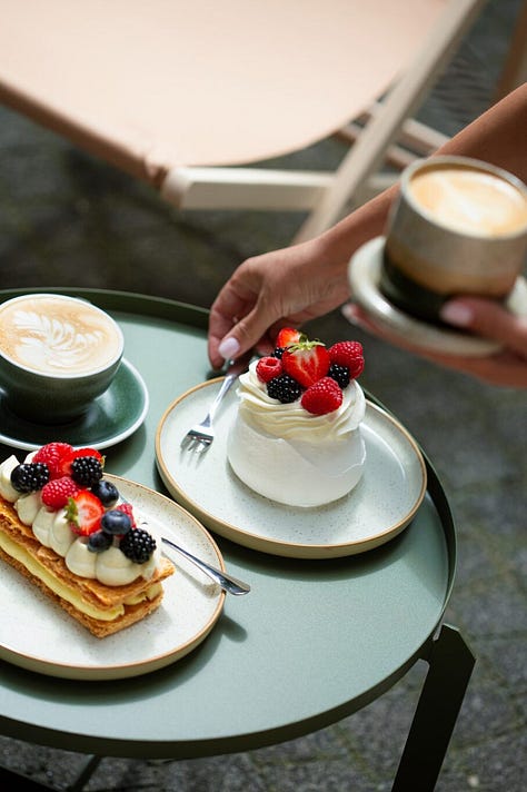 Wszystkie desery przygotowywane są na miejscu, z dbałością o każdy szczegół, a największą popularnością cieszą się malinianki, eklery pistacjowe oraz wyjątkowe mille-feuille – delikatne, wielowarstwowe ciasto przygotowywane w całości w Paj.