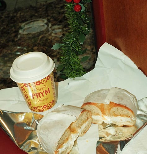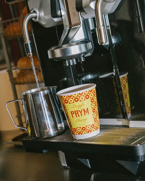 Zatrzymując się na chwilę w tematyce okołobajglowej, warto wspomnieć o nowej miejscówce – PRYM, znajdującej się na placu Politechniki w Warszawie. Oprócz świeżych bajgli złapiecie tam kawę speciality prosto z palarni ROST. Ten kiosk typu takeaway nie jest stricte kawiarnią, ale miejscem, w którym znajdziecie dobrej jakości kawę na bazie espresso.