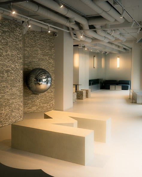 Przestrzeń jest minimalistyczna, wypełniona stalowymi akcentami oraz bordowym kolorem charakterystycznym dla marki (kochamy te kafelki!)